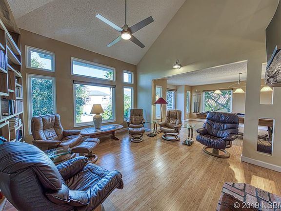 LOCATION, LOCATION, LOCATION!! Just two houses to the pristine ''no drive'' beach, this historic street was once known as the original south turn of the famous Daytona 500 Race!!! Tranquil beauty awaits you from the moment you enter this exquisite beachside home!! You'll feel like you are in the SWISS FAMILY ROBINSON TREEHOUSE in the canopy of trees with AMAZING VIEWS from all NEW IMPACT PELLA WINDOWS installed in 2016 including a PEEK OF THE OCEAN!! See the surf and feel the ocean breeze from the beautifully landscaped brick paver entryway of this spectacular home. The ambiance of the spacious light & bright great room with gorgeous Bamboo wood flooring is superb for entertaining and boasts a Chicago brick accent wall w/wine fridge plus a custom wall to build your wine collection!! Brunswick regulation pool table & all equipment also conveys. The large open chef's dream fully-equipped kitchen is unmatched with top-of-the-line newer stainless steel appliances including two Bosch dishwashers, custom cabinetry, stunning Granite countertops, custom black Walnut island & more! The newly remodeled half bath is a WOW factor with imported scarred California Redwood countertop & copper fixtures & piping. The top floor encompasses the oversize master suite with vaulted ceiling, custom walk-in closet and luxurious master bath! The oversized two car garage with impact doors & silent garage openers is immaculate!! There is also an additional office/bonus room with full private bath on the first level. Relax and soak in the sights & sounds of nature on the inviting outdoor deck overlooking the low maintenance private back yard where you'll enjoy a peaceful serene park-like setting!! Teak furniture conveys. Enjoy the good life in laid-back Ponce Inlet where the pristine "no drive" sugar sand beach is wide & protected for the sea turtles. Dolphins, manatee, fisherman, surfers & sunbathers!! Ride your bike on the beach.! This home has the perfect "Zen" and is truly a "must see"!