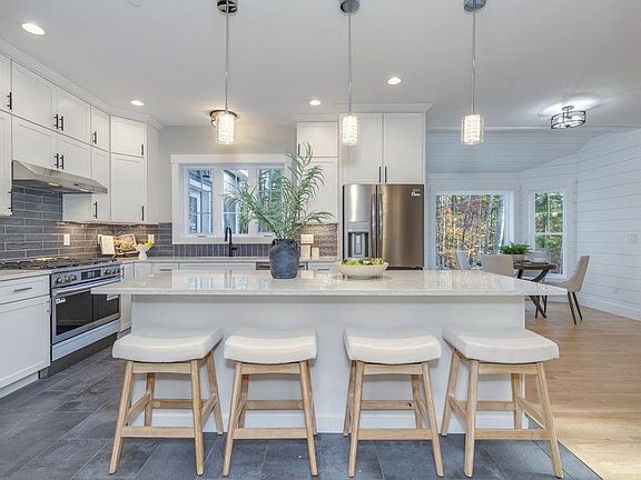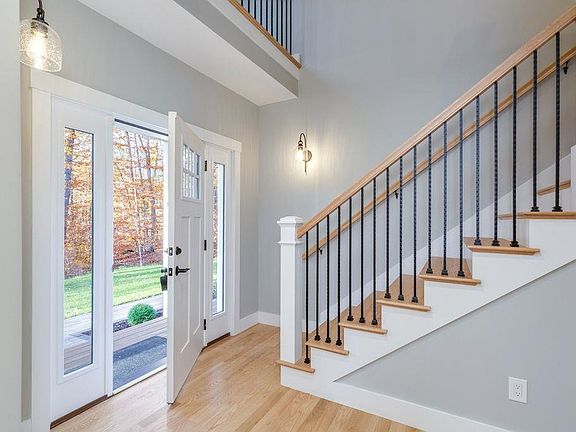 Set on 3.82 picturesque acres on a quintessential NH tree-lined cul-de-sac surrounded by distinguished homes, this property offers a perfect balance of tranquility & harmony with nature. Newly constructed & thoughtfully designed, it boasts fine finishes & expansive windows that frame beautiful wooded vistas. The main floor features a chef’s kitchen w/ a 6-burner dual fuel range w/ air fryer, quartz countertops, center island w/ microwave drawer, ss appl, tile backsplash, breakfast nook w/ nickel gap walls & a butler’s pantry. Completing the first level are a 4-season porch w/ radiant heat, 1/2 bath, office, great room w/ gas FP and dining room w/ wainscoting. The 2nd level hosts a dormered primary suite that is both impressive & expansive. It includes a flex room w/ built-in drawers, closet, & laundry, a walk-in closet, & a bath w/ radiant tile flooring, quartz counter, tiled shower, soaking tub, & linen closet. Two add'l bedrooms, each w/ double closets & ceiling fans, are served by a full bath w/ double vanity, quartz counter, & linen closet. The LL offers a family rm w/ FP , vinyl plank flr, tiled 3/4 bath/laundry, & walk-out. Key amenities include oak flooring & tile throughout, soaring ceilings, Azek farmer’s porch & deck, paved driveway, paver walkway, heated garage w/ 11.5’ ceiling & epoxy flr, conduit & gas line for generator, fire suppression system, smart security monitoring, 2 furnaces & A/C units. Low tax Moultonboro 8 mi. to marinas, town beach & boat launch.