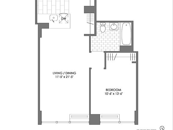 Fantastic studio apartment featuring high ceilings, a separate kitchen, a spacious living/dining area, king-size bedroom, ample closet space, and northeastern exposure with views of Downtown Brooklyn. Gross Rent $4285.