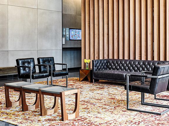 Gorgeous 1 bedroom apartment featuring an open kitchen, spacious living/dining area, and floor-to-ceiling windows with sunny southern exposure overlooking the building's landscaped green space. Gross Rent $4135.