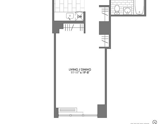 Wonderful studio apartment featuring a separate kitchen, spacious living/dining area, ample closet space, and floor-to-ceiling windows with northern exposure.