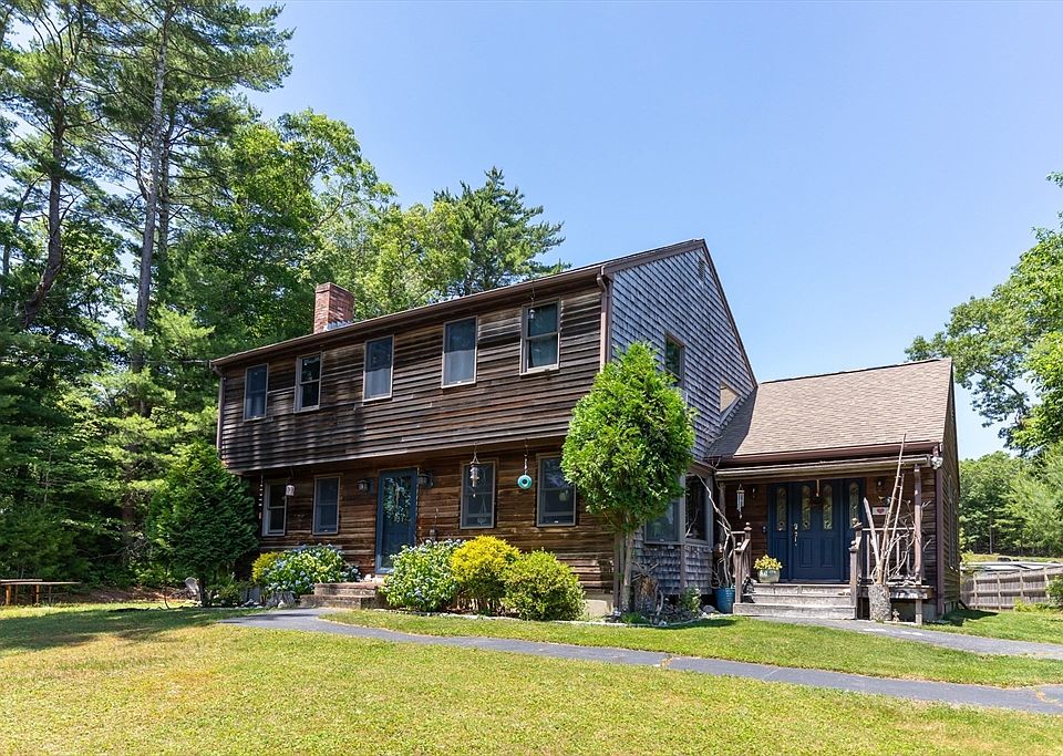 Must see 4 bedroom home on a large wooded lot so close to everything Plymouth has to offer. Enter into a warm, welcoming family room w/ vaulted ceilings, cherry HW floors, glass windows and doors on 3 sides. Step out onto the large deck with bench seating overlooking expansive yard, perfect for entertaining. Open kitchen and DR features SS appliances, granite countertops, glass tile backsplash and bay window to let the sun shine in. 1st floor also has hardwood floors through out and a 1/2 bath and front-to-back LR with wood burning fireplace. Upstairs you will find all 4 BDS. Large primary BR has wood floors and ample closet space. There are 3 more bedrooms that are carpeted and the full BR w/ beautiful tiled walk in shower. Storage galore in the basement, newer, expanded water heater, new burner (2024), water filtration system. Newer over sized shed w/ electricity. Convenient to RTE 3, close to town, Myles Standish State Forest, Wildlands Trust, schools, shopping and more.