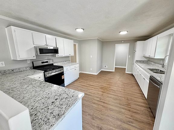 Beautifully updated 3-bed, 2-bath home w/ 2-car garage, nestled in a quiet, spacious cove.Step inside to find modern colors, new luxury vinyl plank flooring & plush carpet with pad in bedrooms.The kitchen features new granite countertops, stainless steel appliances including a gas stove, ample counter space & pantry.Bathrooms have new vanities, mirrors, & lights that create a fresh, modern feel-primary bath showcasing new tile floor & a gorgeous tiled shower w/ mosaic accents.Thoughtful touches like new lighting, ceiling fans, hardware, and blinds throughout add warmth and a fresh, inviting feel to every room. The garage includes a utility closet for added storage. Outside, enjoy the convenience of a low maintenance brick exterior, oversized deck overlooking the large fenced yard & wired storage shed/workshop. Enjoy cookouts at home or visit the large park close by. With its thoughtful updates and peaceful setting, this home offers the perfect place to relax and enjoy everyday living.