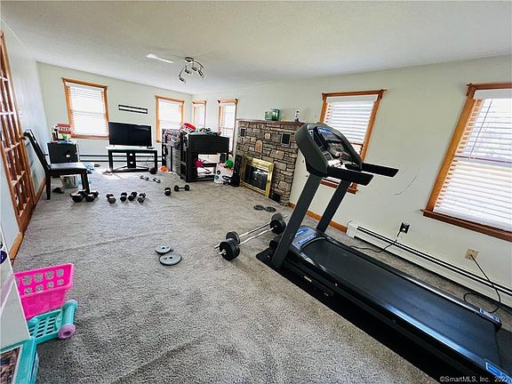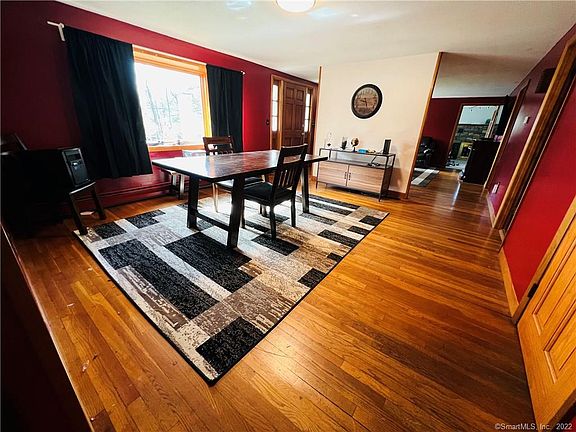 OVERSIZED RANCH w/ BEAUTIFUL HARDWOOD FLOORS throughout on 2 ACRES right on the RI LINE!! 2 car garage under and a DETACHED 2 car garage for all the toys and vehicles. FIREPLACED living room (HARDWOOD UNDERNEATH) could POSSIBLY be a 3 rd bedroom. LIVING room and DINING ROOM BOTH have a BAY WINDOW. 14 x 26 HUGE ENCLOSED PORCH/3 SEASON room leads to LARGE DECKS for entertaining. STAINLESS APPLIANCES in the eat in kitchen (DATED) and a LARGE BATHROOM (DATED). 850 ft FAMILY room in lower level w/ PELLET STOVE and 1/2 bath. 2020 SOLAR PANELS (TRINITY) to SAVE on electric bill 24 of them. SHED CONVEYS, PAVED DRIVEWAY.