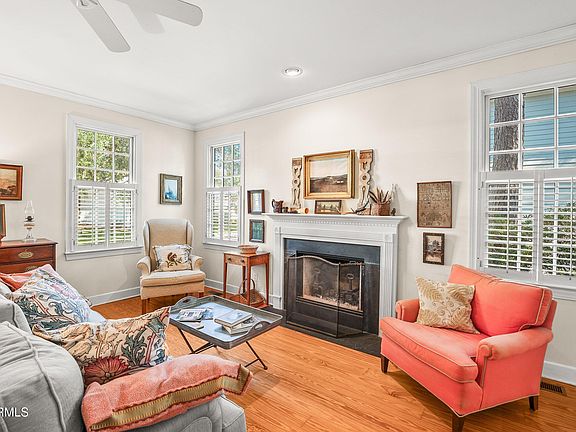 Welcome home! This inviting Cottage is straight out of a movie set... quaint sidewalks and mature landscaping all set on the beautiful waterfront community of Battery Point! As you walk into this home, the open floor plan invites gatherings! The dining room sits conveniently to the right with the living area to the left. The living area is centered on a beautiful wood burning fireplace and are punctuated by the beautiful hardwood floors throughout! The galley kitchen is a step above with dual fuel stove/oven and newer appliances which lead to the laundry room/mudroom! The first floor is completed with a large primary bedroom with a large closet and attractive bathroom! There is a half bath at the bottom of the stairs which lead to the two large guest bedrooms and large guest bath. There is an abundance of storage in the walking attic.... Both of them!!