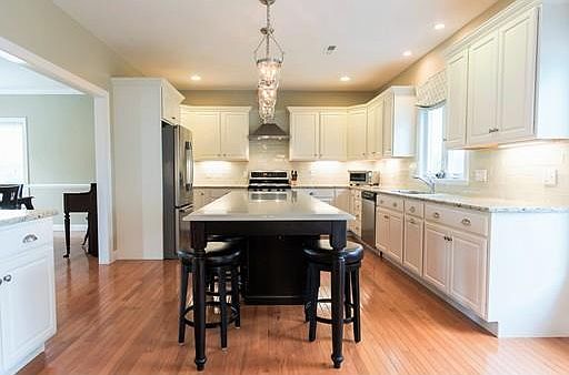 WELCOME HOME to this gorgeous modified Blackstone plan in sought after Brookmeadow Village! This Energy Star home offers an upgraded Chefâs kitchen w/ SS appliances, elegant cabinets, granite counter tops & an over sized ogee edge quartz island w/ ample space to prepare a gourmet meal. The eating area w/ deck access flows directly to an over sized bright and airy family room w/ vaulted ceilings, gas fireplace & ceiling fan. Adj. to the kitchen, the lg. formal dining room is perfect for entertaining. The enormous master suite offers a seating area, huge walk-in closet, and bath with large shower, soaking tub, and dbl. vanity. 3 addâl large bedrooms with ample closet space, a full bath w/ linen closet, and laundry finish off the 2nd floor. Plenty of extra storage space is found in the over sized garage and full walk-out lower level w/ high ceilings. Enjoy tranquil views from the deck of the professionally landscaped yard abutting 2 miles of walking trails and woods for added privacy.