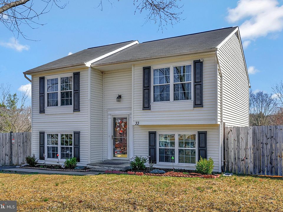 Cute as a button and ready for it's new owners! Welcome to 33 Buck Road, located in family friendly Vista Woods! This is the perfect starter home for the first time buyer! Downstairs features a family room with tile floors, an office with custom built in shelving perfect for working from home or virtual school, and the updated eat in kitchen with white shaker style cabinets, stainless steel appliances, and plank floors. On the upper level you will find 3 generously sized bedrooms, including the Owners suite with walk in closet, and updated baths. The spacious backyard with privacy fence and stamped concrete patio will be the perfect place to enjoy a glass of sweet tea on summer nights. Vista Woods has NO HOA and is conveniently located near everything you'll need, yet tucked away to give you peace and tranquility. Just minutes away from restaurants, shopping, recreation, Quantico, and transportation including 95, Rt 1, and commuter lots. Within walking distance to Middle and Elementary schools. 33 Buck Road isn't just a house, its a home, and it is all ready for you to move in and make a lifetime of memories! Book your showing today!