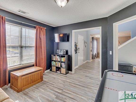 Boasting 4 bedrooms and 3 full baths, this residence features a newer HVAC system for peace of mind. Enter through the two-story foyer and discover a versatile layout including a separate flex/living room, formal dining room, and a full bathroom downstairs, along with a guest room for added flexibility. The family room impresses with its soaring two-story ceiling and electric fireplace. The large eat-in kitchen is a chef's delight, equipped with a breakfast bar, stainless steel appliances, built-in desk area, and pantry, all overlooking the family room. Upstairs, find 2 additional bedrooms along with a spacious owner's retreat featuring a walk-in closet, sitting area, private office space, and an en suite bath boasting a double sink vanity, garden tub, and separate shower. Private fenced backyard with a huge deck area. 2-car garage. Phenomenal community amenities including a clubhouse, pool, and playground. Convenient access to I-95 and I-16.