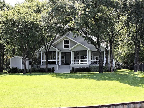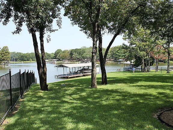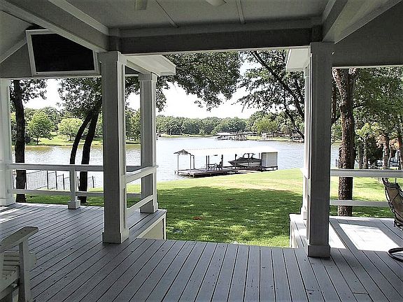 Beautiful custom waterfront home located on DEEP WATER! 10' AT DOCK! YEAR-ROUND ACCESS TO THE LAKE! Home is located in large protected cove with 130 ft of waterfront. Ideal for swimming, fishing or just floating. HUGE yard with shade trees and tons of usable space for the kids to play. Spacious dock with electric boat slip on one side, and the other is an adjustable electric swim deck that can be submerged into the water. The custom swim deck allows for easy access in out of the water. It is great for lounging while staying cool. Enjoy panoramic views from the AMAZING large porch with vaulted ceilings and flat screen TV. Fully loaded interior with custom trim throughout, TONS OF STORAGE, including a hallway of built-ins, lots of natural sunlight, large kitchen with stainless steel appliances, granite counter tops and full wet bar. Terrific set up for entertaining! The huge master suite and spacious spa like, master bath, both recently renovated. The additional bedrooms are finished out with an adorable cottage style look. This house is set up for full time living, or perfect for a nice weekend get-a-way. Detached 3 car over-sized garage. HUGE driveway and tons of room for parking. Iron fence surrounding entire property, with an electric gate. Its truly a "house in the Hampton's" right here in Texas.