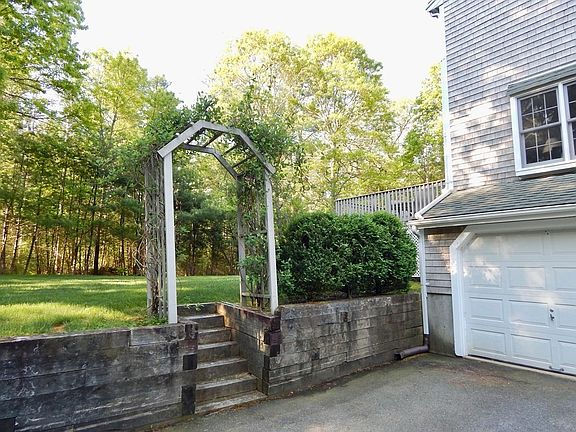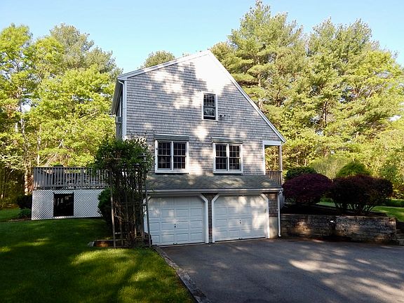 Wonderful, cozy Cape at the end of a cul-de-sac bordering wooded trails leading to Silver Lake Reservoir. Enter through the farmers porch into the tiled mudroom before settling into the sun-filled, oversized family room with sliders out to the large, 2-tiered deck. The updated kitchen features granite countertops, stainless appliances, and a central island. Flowing nicely off the kitchen is the spacious dining/sitting room with a wood-burning fireplace, skylights, vaulted beamed ceiling, and hardwood floors. The first floor bedroom and full bath could accommodate in-law needs. The wrap-around staircase leads to the upstairs balcony and three large bedrooms, including a huge master with a skylight and a large, walk-in closet. The updated full bath with granite countertops completes the second floor. The dry basement and two separate attic spaces provide for ample storage. Newer furnace and windows, 2-car garage, acre lot, and a private yard. Close to the commuter rail.