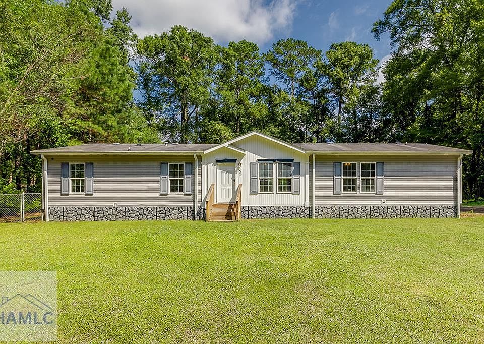 Large 2008 Destiny manufactured home with five bedrooms and three full baths on half acre lot in the desirable Woodland Lakes Resort community with five freshwater lakes, clubhouse, playground, community pool with shower/bathhouse facilities, park with covered picnic shelters, and creeks for fishing and crabbing. The home has retired titles and is anchored to code for FHA/VA financing. (Currently has an FHA loan.) There is a nice covered back porch, updated septic system, storage building, and almost completely fenced backyard. Renovations wrapping up now with updated bathrooms, LVP flooring throughout, freshly painted interior, new light fixtures and ceiling fans with lights, and newer appliances. The large island kitchen has lots of cabinets and counter space with access to the laundry room. The primary suite has a walk in closet, two sinks, separate tub and shower. Two guest rooms share a Jack n Jill full bath, and the other two guest rooms share a full hall bath. Priced to sell!