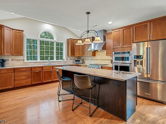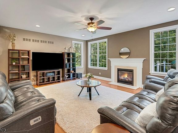 Experience refined living in this stunning Toll Brothers Colonial on 3.63 private acres in the Estates at Long Valley, backing to the Black Oak Golf Course. Offering over 4,000 sq ft of elegant living space, this stately brick-front home blends luxury, comfort, and convenience with easy access to highways, shopping, and commuting. The dramatic two-story foyer with curved staircases opens to an expansive, elegant layout. Enjoy a spacious family room with a gas fireplace, a private first-floor office, a formal dining room, and a gourmet kitchen featuring granite countertops, center island, stainless steel appliances, and rich wood cabinetry. The oversized primary suite includes a sitting room, two walk-in closets, and a spa-like bath. A large bonus room offers flexible space for an office, playroom, or studio. The walk-out basement with high ceilings provides excellent potential for future finishing. Outdoors, relax on the newly redone composite deck with custom lighting, or gather around the patio fire pit overlooking private wooded views. Additional highlights include a mudroom, 3-car garage, and optional country club membership. Located in a vibrant community with seasonal events and top-rated Long Valley schools, this exceptional home offers the perfect blend of refined style and everyday comfort.