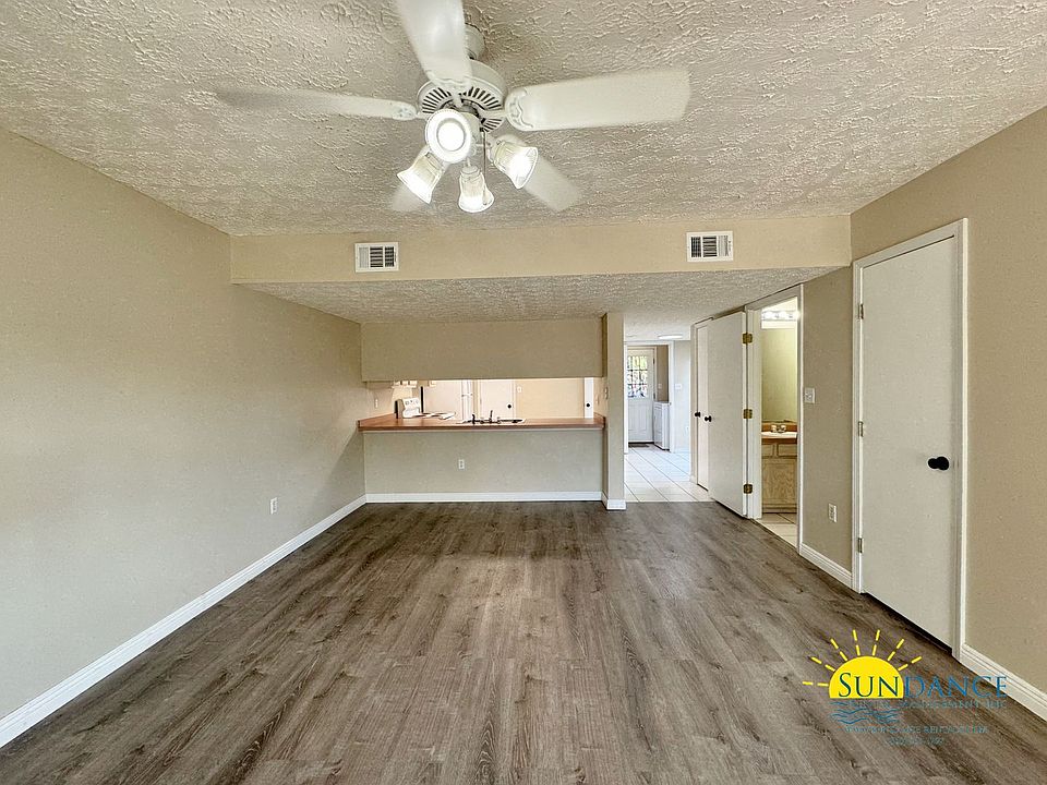 Welcome to your new central Fort Walton Beach home! This lovely 2-bedroom, 1.5-bathroom townhouse is a spacious end unit spread over two stories. Conveniently located, you're just a short distance from vibrant downtown shopping, dining, entertainment, and the stunning white beaches. Plus, Hurlburt Field and Eglin Air Force Base are nearby for added convenience. Step inside to find a bright and inviting living room adorned with modern LVP flooring. The full eat-in kitchen boasts a pantry and breakfast bar, perfect for casual meals while overlooking the living area. A convenient half bath is located on the ground floor, while upstairs you'll find two generously-sized bedrooms, one featuring access to a private balcony and full bathroom. A laundry area with a washer and dryer (included as-is) complete interior of this unit. Outside, enjoy your own private balcony and an open back patio areaideal for relaxing or entertaining. With driveway parking included, this townhouse offers both comfort and convenience. Don't miss the chance to make this your new home!