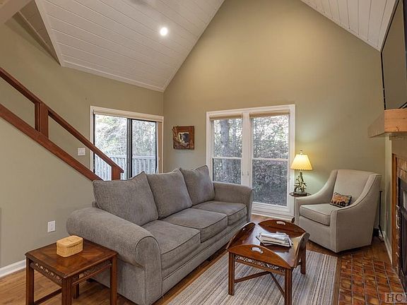 If you're looking for a mountain getaway without the upkeep of a house, this townhouse is for you! Located in desirable Chestnut Ridge, near the heart of Sapphire, NC, this well-maintained, turnkey, furnished unit offers a nearly-level entry directly from the parking lot. Recent updates include hardwood floors throughout both levels, new kitchen cabinets and countertops, a full-size washer and dryer on the main level, and an updated guest bath. The owners' bedroom and en-suite bath is on the main level, while the guest bedroom and full bath is on the upper level for added privacy. A loft is suitable for an office, children's play area or even a workout space. The deck overlooks a wooded area and a level yard, with a stream running alongside the property. Ownership includes access to Sapphire Valley Master Association amenities, including a fitness center, indoor/outdoor pools, a community center, trails, tennis, golf, skiing, and access to Lake Fairfield.
