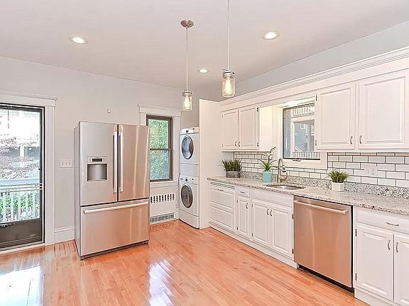 Conveniently located on a tree lined side street & just steps away from Tufts University in Somerville! A newly renovated and sunny 1st Floor Condo provides 2-levels of living, 6 rooms, 3 Beds, 1 Full bath, 1277 sq ft. Airy and well designed open floor plan with living and dining room as well as a beautiful kitchen with granite countertops and Stainless Steel appliances (dishwasher, microwave, chef's stove, and oven) that leads to a large back deck overlooking a large yard perfect for summer bbqs. Cherry on top is that the laundry is in unit (located conveniently in the kitchen) and not coin operated (its free to use). Plenty of storage space in basement and Off-Street (Non-tandem) Parking space, plus on-street permit parking. Close to Davis Square, Green Line T-station, 93 & Boston. No brokers fees ! Renter is responsible for gas and electricity. House has been recently renovated so there is a strict no pets or smoking in the house policy. Off street parking is available. No broker fees !
