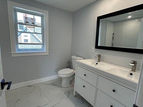 Sophisticated top floor NEW construction unit of a lovely 3 family nestled in a charming neighborhood of Roslindale. Spacious, bright and airy, this apartment features two bedrooms, a separate room for a home office or gym, one bath, a laundry room with a stackable washer/dryer, central air, & a private, sprawling deck. Thoughtfully curated design - three paneled doors, recess lighting, pretty hardware throughout for the refined renter. Grounded blue soft close cabinetry, white quartz countertops, & brand new stainless appliances center the open concept kitchen living area. Bath has rain head shower, built in bench, double sink, & white subway tile. Timeless, earthy hardwoods. Brand new oversized Harvey windows invite showers of natural light, and oversized closets provide ample storage. This unit is sure to make you smile - and the design reflects condo living not your typical rental - come try it out :) Easy commuter access, shopping, hospitals, etc. 1 parking spot included.