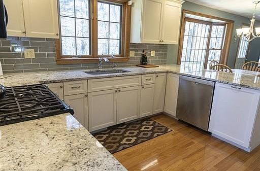 Get ready to own the most beautiful colonial home! Set on a picturesque lot at the end of a cul-de-sac, great location in Westford. The 1st floor has all the amenities you have come to expect: formal living & dining rooms, updated kitchen, family room. The kitchen has granite counters, high end stainless appliances, a breakfast bar, & gorgeous white cabinets. The family room has a cathedral ceiling, wood burning fireplace and slider to a large deck. The deck has an awning for enjoying those summer afternoons! The second floor features 4 bedrooms, including a master bedroom with a vaulted ceiling, master bath, large walk-in closet and additional bonus/office room. All bedrooms are well-proportioned and family bathroom has a jetted tub. The house overlooks woods in the back and is on a large, level lot that has mature vegetation and a sprinkler system. Additionally, the 2 car garage and unfinished basement are ready for your needs! Located near the walk/jog trail, golf course, much more!