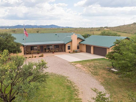 Elegant high-desert estate in Sonoita with sweeping views, custom home, premium equestrian facilities, and full-property solar system-where luxury meets the open range. Located in the heart of Sonoita, Arizona, on highly desirable Curly Horse Ranch Road, this exceptional estate offers sweeping views of rolling grasslands and the surrounding mountain ranges. The property features a thoughtfully designed 5-bedroom, 3-bath custom home, encompassing approximately 3,472 square feet. Highlights include vaulted ceilings, three fireplaces, and a private office with custom bookcases and cabinetry, and a separate entrance-ideal for remote work or a home business. Bright and welcoming, the home opens to beautifully landscaped patios and porches, including an outdoor fireplace that sets the stage for comfortable outdoor living and entertaining. The oversized three-car garage easily accommodates full-size, four wheel drive pickups, with ample space remaining for storage. Equestrian facilities are well-equipped, featuring a quality 6-stall (12x12) horse stable, with separate dedicated tack and feed rooms, a round pen, pastures, outdoor pens, and turnout area-ready for the active horse enthusiast. Arena panels are also available and ready to be set up, offering the option to quickly add a custom arena to suit your training or riding needs. The entire property is fenced with no climb horse fencing. Additional improvements include a spacious 1,296± square foot shop with 220 power and double sliding doors, covered RV or trailer parking, and a premium solar power system that supports the entire property with efficient, off-grid capability. An exceptional offering for those seeking refined, sustainable living with the freedom of wide-open space-all in a breathtaking grassland setting. • Fully fenced with no climb horse fencing into 2-3 pastures. • 3 Porches - 1,076 +/- s.f • Pavers on all patio/porch areas. Custom beehive fireplace, custom gates. • Oaktree lined driveway • Full privately owned 11.10 kW solar array with PowerWall consisting of 3 Tesla batteries with 40.5 kWh of storage installed December 2020. Connected to grid as backup. • Well - total depth 260' • Steel roof installed 2019. • New garage doors and openers installed 2023. • New HVAC Units (2) installed 2022. • New gas hot water heaters installed 2025 • Propane gas heat, hot water and stove top. • Exterior repainted 2017. • Interior paint 2024 • Electric front entry gate. Note: The property owner is a licensed real estate broker.