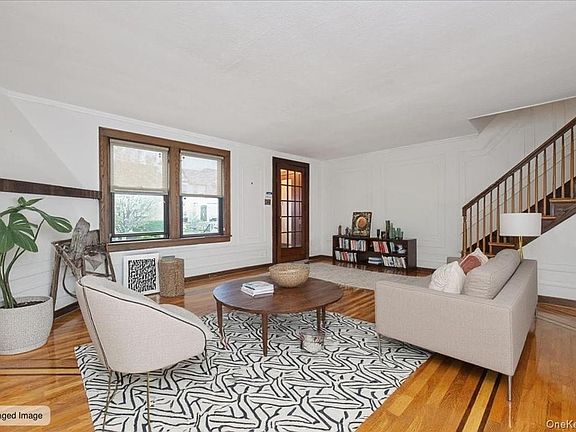 Location, location! Commuting into the city? From this all brick Tudor style home in the Gibson section of Valley Stream it is just 2 short blocks over to the LIRR Gibson train station which brings you into Penn in about 40 minutes. 1 block straight down Dartmouth Street is Barrett Park. This all Brick Tudor offers three levels of living space with original wood floors on the first and second floors. Entry from the front foyer with coat closet into a large living-room with gas burning fireplace, large formal dining room with sliders to your outside deck space. Off the formal dining room is the eat-in-kitchen, including gas stove, dishwasher, refrigerator and microwave. Upstairs offers 2 Primary sized Bedrooms, a 3rd bedroom and 1 full bath. A full, above grade, walk-out basement with a 1/2 bath is easily accessed inside from a staircase in your kitchen or from your private driveway at the rear of the property. Very low maintenance front and back yard. Plenty of daylight to be enjoyed on your East facing rear deck in the mornings and afternoons on. Solar panels for low electric bill. This Valley Stream home is in the Hewlett-Woodmere school district.