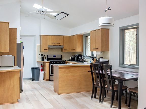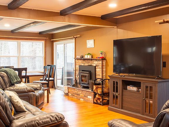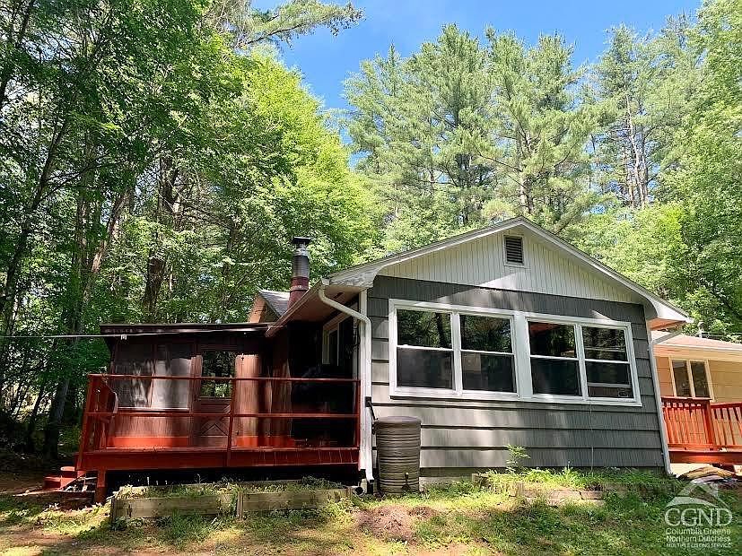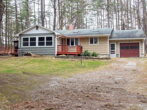 Wonderful opportunity close to the Berkshires. Quiet dirt road with usable land finds this mid century country retreat. Open floorplan with great room to kitchen. Fireplace for the cozy winter and late spring fires. Double sets of doors to a huge screened porch and deck. Warm wood floors and high ceilings with beams. Three bedrooms. One en suite. Primary has great storage and light. Lower level with 3/4 bath, and two other rooms. Media and studio rooms, or whatever you imagine. Recently renovated and used as a year round country retreat. Attached garage with shelves for skis, mountain bikes and hiking gear. Chicken coop to round out the country feel. A usable piece of land for summer picnics, and yard games. Maples to tap and rock out croppings to climb. Shed. Charming.