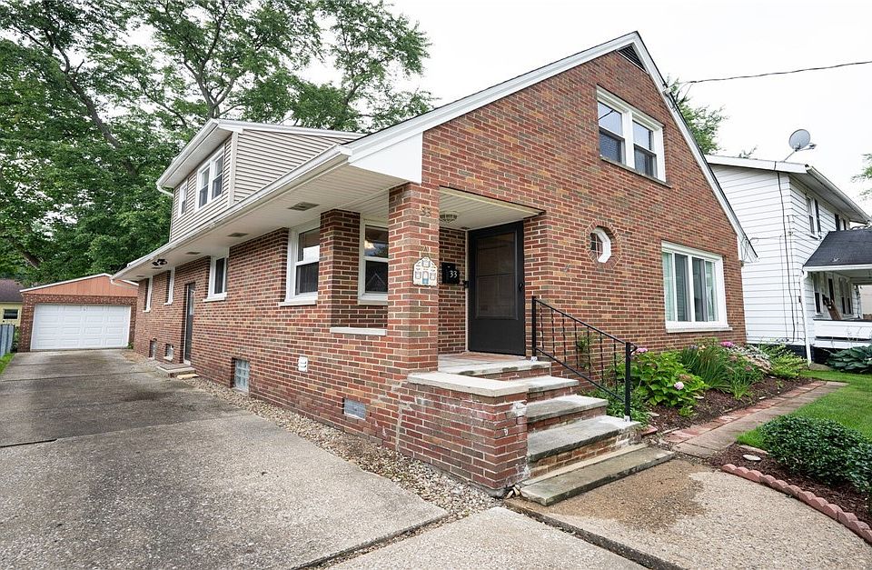 Welcome to 33 Devonshire Drive! A charming brick cladded Cape Cod situated in the Ellet area. Step inside this well maintained home and fall in love with it's warm and inviting spaces. Includes 4 bedrooms, 2.5 bathrooms, a remodeled kitchen with stainless steel appliances and updated cabinets (2014), a living room with an abundance of natural light, and a spacious bonus room in the upstairs. Cosmetic updates such as garbage disposal (2014), doors (2014), main level bedroom flooring (2014), upstairs shower (2014), and windows (2014) can be seen throughout the home. The detached garage has also recieved an updated door (2016). This home boasts roof and siding updates (2019), gutter (2019) chimney liner (2014), and insulation, as well as electric panel updates (2014). The waterproofed basement features a new toilet (2023). This home is within close proximity to the highway for an easy commute, and the surrounding area features a multitude of shopping, dining, and entertainment opportuniti