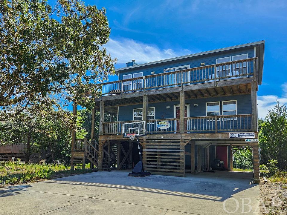 Southern Shores, four bedroom two and one half bath with a high elevation and horizon ocean view. Located a mere seven houses from the beach!!! POOL and Hot Tub. Sought after X Zone. No flood insurance needed. Bright, open, airy living area with cathedral ceiling, wood burning fireplace and ocean views. Opens onto huge decks. An updated, bright, open kitchen with beautiful cabinets and granite countertops and convenient breakfast bar. Off in the SW corner is a bright powder room and owners' storage closet. The middle floor has four roomy bedrooms two on each side with a Jack and Jill style bathroom between each pair. One of the bathrooms has a whirlpool tub/shower. The washer and dryer are located off the main hallway. Plenty of parking under the home with more owners storage areas. Convenient DRY ENTRY from underneath the home. Enter and leave without getting in the rain or hot sun. Plenty of covered parking. Sold FULLY FURNISHED minus certain artwork and items in locked owners’ storage. Hardi-plank recently painted outside and new top level decking boards. One heatpump is only 1 year old. Roof just replaced about 2 years ago. Convenient vinyl clad double hung, tilt in windows make them EZ to clean. There is a convenient pedestrian crosswalk located at Dolphin and Duck Rd. A rental machine grossing $48,839 in advertised rental return in 2022. Known as Peaceful Pelican #245 in the rental program. Look in Associated Docs Rental Printouts, MOG/RPD, Bill of Sale, County As Built Survey, Expenses etc. Basketball goal. POOL equipment and furniture stored under the home. Large 14 x 32 pool inside a large enclosed/fenced area. For a low $95 per year the Southern Shores Civic Association lets you take advantage of three sound side marinas with picnic and crabbing areas, Private Sound Beach, thirty-four Private Ocean Beach accesses, parks, basketball and soccer fields. For an additional fee you can join the SSCA tennis courts. Rentals are blocked for the rest of the season, so vacant and EZ to show. Kaba code.