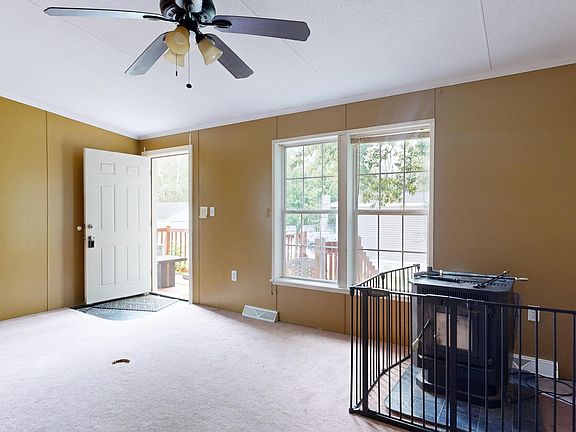 Welcome to this spacious 1996 Pine Grove double-wide manufactured home located in the desirable Maple Hill Estates. Offering convenient one-floor living, this home features 3 bedrooms and 2.5 baths, including a primary suite. The layout includes two inviting living rooms, a formal dining area, and a separate laundry room. The island kitchen provides plenty of workspace, while the pellet stove and fireplace add warmth and charm. Step outside to enjoy the deck and additional storage shed. With ample space and thoughtful design, this home is perfect for comfortable living and entertaining.