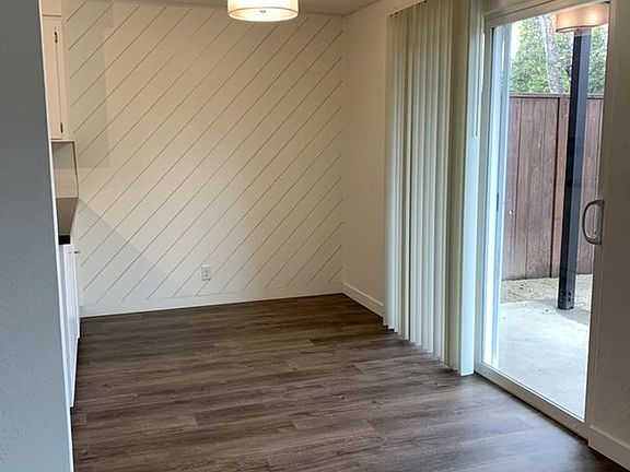 Updated 2 bedroom 1.5 bathroom apartment. Recently remodeled, everything in this unit has been updated to create a fresh, modern look and feel. This open floor plan home includes gorgeous luxury vinyl plank flooring throughout, stunning countertops, updated cabinetry, as well as updated energy-efficient dual pane windows, chic bathroom vanities, and interior doors. The kitchen has updated energy-efficient, stainless-steel appliances. Most units come equipped with a decorative fireplace in the living room (Fireplace is not for use, strictly for decorative purposes only). All lower-level units have dual-pane sliding glass doors leading to a private fenced yard of approximately 650 sq. ft. Property is conveniently located in one of South Eugene's favorable neighborhoods, just one block from restaurants, coffee shops, retail and Market of Choice. Less than mile to Amazon Park and community center; Approx. 2 miles to downtown and UO. There is on-site laundry with newer machines with option of coin/op or app-based pay. One off-street parking space is provided in adjacent parking lot and plenty of additional street parking is available. The water and sewer are on a shared meter and are billed by the management company. The owner provides yard care and landscape maintenance. Tenant pays for unit electric, and a pro-rated share of common area electric, water/sewer, and garbage service.