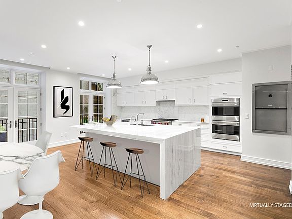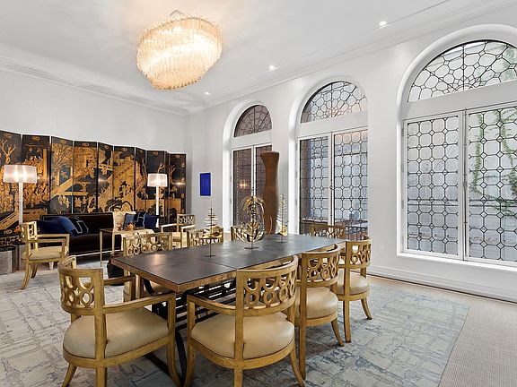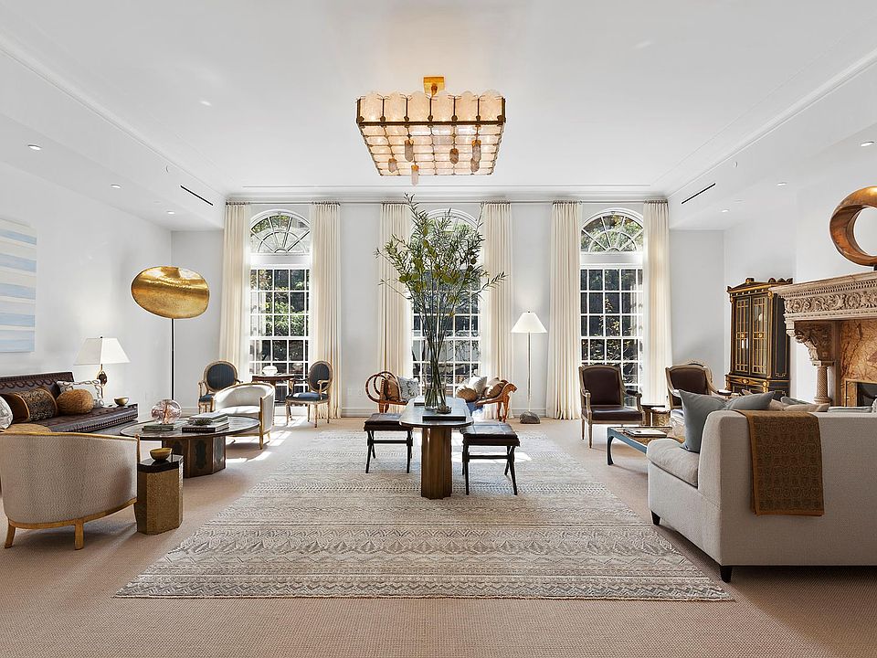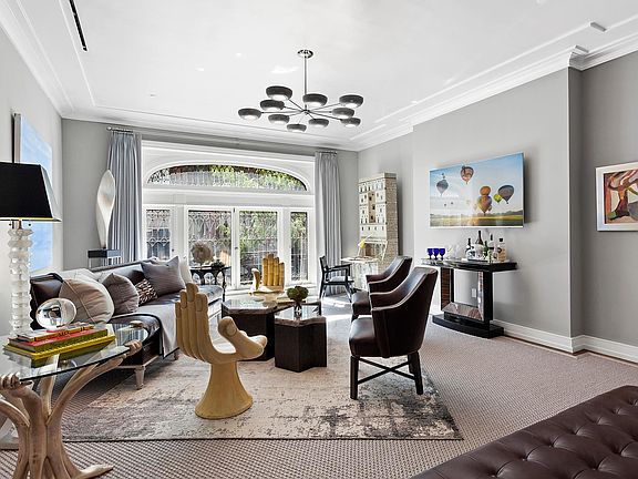 Designed by famed architect, Grosvenor Atterbury in 1901, this 33' wide townhouse features the privacy and exclusivity of a single family home while offering all the conveniences of a full service condominium. The interior design palate of neutral grays and creams has been beautifully executed and is effortlessly classic. From the breathtaking entrance foyer finished in Chambord Limestone & polished plaster, to the 5" wide white-oak planked floors throughout, the townhouse exudes sophistication. The massive chefs kitchen has Olympian White Danby Fleuri Stone countertops, and Olympian White Danby vein cut marble island and low luster white lacquer cabinetry. The kitchen has been outfitted with all top of the line appliances, such as Wolf range and oven, Sub-Zero refrigerator, freezer, and wine-cooler, Miele dishwasher, and Dornbrocht faucets. The townhouse features approximately 10,088 sq ft over four floors with both a private and public passenger elevator servicing each floor. There are currently 5 bedrooms and 5 full baths and 3 half baths. The parlor floor features over 12' ceilings with beautiful south facing floor to ceiling arched windows and there is a large private terrace off the first floor. There is no other townhouse/condominium in the city that can compare!