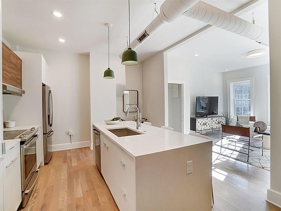 - Features: Counter Bar, Eat-in Kitchen, Kitchen Island, Pantry, Quartz Counters, Wood Floor
