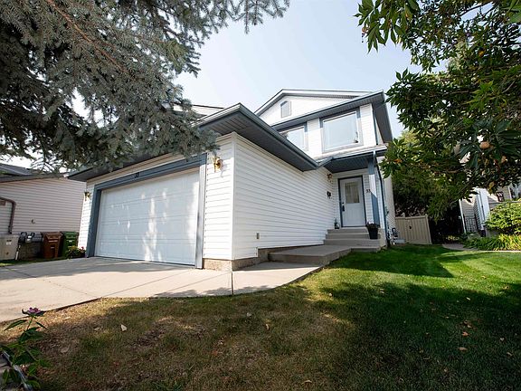Welcome to this original owner gem tucked away in a quiet cul-de-sac in the highly sought-after community of Erin Ridge; perfect for a family looking for a 4 bed/4 bath w/double attached garage. Enjoy the scenic tree-lined streets of St. Albert and step inside to find a bright and inviting main floor featuring a vaulted ceiling that floods the space with natural light. The well-designed home offers a living room and eating area overlooking the private backyard, perfect for a quiet morning coffee. The kitchen has plenty of cupboard space plus a walk-through pantry into your main floor laundry, conveniently connecting the garage entry and a 2-piece bath. Upstairs, you’ll find 3 bedrooms, including a primary suite with a full ensuite and walk-in closet.The lower level offers a fully finished basement with a large living area, fourth bedroom, and spacious 4th bath. The backyard is complete with a deck, fire pit, and shed, all enveloped by beautiful mature trees—the perfect starter home close to all amenities!