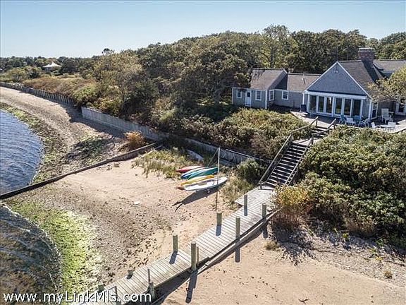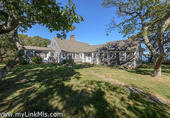 This remarkable waterfront property sits atop a knoll and commands outstanding views of Katama Bay all the way into Edgartown Harbor and the length of Chappaquiddick Island all the way to Norton Point. The 2100 sq.ft. main house has seen many additions, updates and alterations since its original construction in the 1930's, while the 3-bay garage/boathouse with 1,548 sq.ft. guesthouse above was built in 2001. The current owners grew up summering at the property since their parents purchased it in the 1950's. For them it is filled with cherished memories - while the new owners will love it for its 300 feet of sandy beach, deepwater dock and the wooded setting that affords serenity from all the world around. Adjoining 2.8 acre waterfront parcel lying to the south of the home offered for purchase at additional cost.