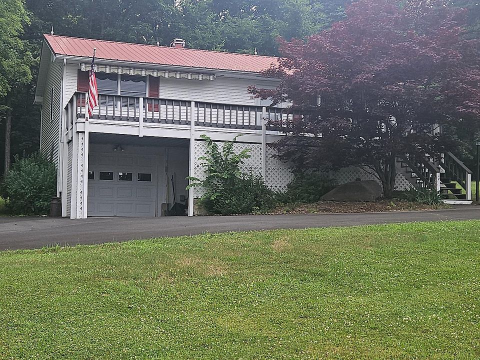 This home is a beautiful gem. Perfect setting, quiet and serene. Beautifully kept and maintained home on a private road cul-de-sac. Mountain views that everyone wants. 3 bed, 2 bath lovely home on 1 acre. Modern kitchen, dining area and large living room. Carpeting throughout the house is plush and soft. Hot air heat and central air. Full house of furnishings sold with the house including washer and dryer. One car garage under home with walk out basement. Deck on front of the house has an awning that blocks the sun but not the view. Deck at back is accessed by sliding glass doors. Beautiful mature trees and bushes are all around the house. Paved driveway and parking area.