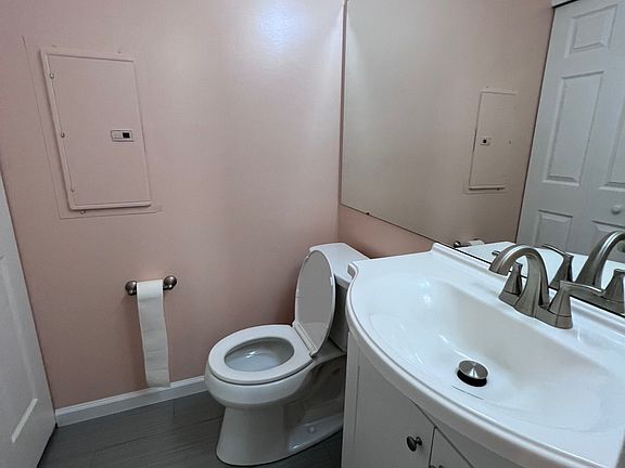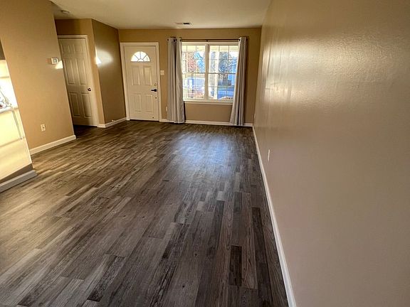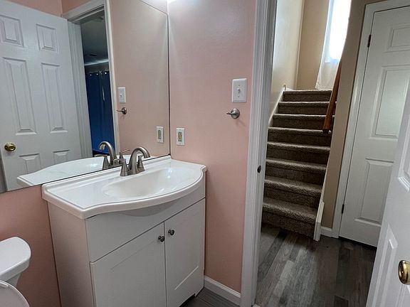 Recently fully renovated, new windows are installed, freshly painted, new flooring (vinyl flooring on both floors and carpeting on the staircase), new vanities, faucets, toilets, bathtub, washer and dryer, tile flooring in both bathrooms. Kitchen: new appliances, faucet, counter tops, flooring. Fenced in patio that leads to the field on the back. two-car driveway parking.