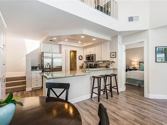 Step into this meticulously upgraded 1,227 sq ft Woodbridge condo, a true gem located just steps from the tranquil greenbelt. This exceptional rental property has been thoughtfully upgraded to provide a highly functional 2-bedroom living space with a versatile loft area. Recent renovations have breathed new life into this rental property, including fresh exterior paint, custom kitchen and bathroom remodels, a built-in pantry, and newer flooring throughout. New energy-efficient windows and a slider, along with a recently installed AC and furnace, ensure that you'll enjoy comfort and energy efficiency during your tenancy. The open-concept floor plan is designed with renters in mind, making the most of every square foot. The living and dining area is graced by a cozy fireplace, and the updated eat-in kitchen shines with extended granite countertops and sleek stainless steel appliances. Convenient indoor laundry facilities are tucked just off the kitchen, adding to your daily convenience. Dramatic high ceilings, recessed lighting, and floor-to-ceiling windows, complemented by an open skylight, invite an abundance of natural light indoors, creating an inviting and contemporary ambiance that you'll love coming home to. The master bedroom suite is conveniently situated on the main level, while the second bedroom and bathroom are located upstairs, adjacent to the open loft. This versatile loft area is perfect for an office space or can easily be adapted to suit a shared but pleasantly separated living space. Outside, you'll find a newly paved front patio, ideal for relaxation and enjoying the outdoors. As part of the Woodbridge community, you'll have access to a plethora of amenities, including 24 pools, a park with sports courts, picnic and BBQ areas, as well as two serene lakes offering swimming and recreational activities such as canoeing, paddleboarding, and sailboat rentals to inspire an active lifestyle. This rental property includes a one-car garage and a designated parking space, providing convenience and security for you and your vehicle. The presence of award-winning Irvine schools nearby is perfect for families, while shopping options are within easy reach. Known for its safety and family-friendly atmosphere, Woodbridge is one of the most sought-after communities in Orange County. As a renter, this condo offers the perfect opportunity to experience the Woodbridge lifestyle and all it has to offer. Welcome home to a higher standard of living, tailor-made for renters like you! No added fees for pets. Utilities (water, electricity, gas, internet) paid by renter. HOA paid by owner. Owner pays HOA which maintains landscape outside of patio and exterior property maintenance (roof etc.). Owner also has home warranty on appliances to assist with any problems. Renter to pay utilities (gas, water, electricity, internet), maintain plants and outdoor garden. Renter insurance and first month security deposit is required. Targeting 12-month lease but open to 24-month as well. No pet fees for animals. No smoking.