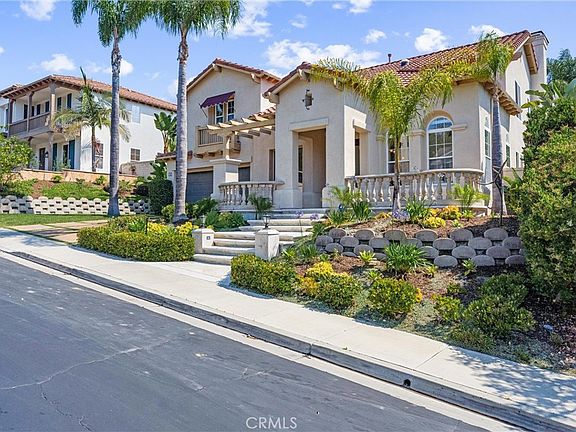 Exquisitely upgraded, this stunning home is located in the prestigious gated community of Kensington Estates in Aliso Viejo. The property boasts impressive curb appeal with expansive porches, meticulously landscaped hardscape, vibrant flower beds, and a grand mahogany and glass front door. Upon entry, you are welcomed by a spacious living room with a two-story ceiling, cozy fireplace, and surround sound wiring. The main level also includes an executive office, a dining room, well-appointed kitchen, laundry room, family room with a striking stone wall fireplace, a convenient half bath, and a two-car garage with an epoxy-coated floor and ample storage cabinets. The gourmet kitchen is a chef's dream, featuring newly installed cabinets and a desk area, a charming eating nook, a large island with a breakfast bar, custom pantry and cabinetry, stainless steel appliances, quartz backsplash, and a quartz-topped island. Ascend the wood and wrought iron staircase to find the luxurious master suite, complete with a spacious walk-in closet, double quartz sinks, an upgraded walk-in shower, a soaking tub, and a makeup desk. The second floor boasts a recently upgraded bedroom suite with newly built walk-in shower, unique to this home, as well as two additional bedrooms and a full bathroom. Outside, the backyard oasis features recently installed pavers, a patio cover, a gas-ready fire pit gas line, and flourishing fruit trees.This home is adorned with travertine and luxury laminate floors, high baseboards, crown molding, rounded-corner walls, recessed lighting, large windows, cathedral ceilings, ceiling fans, built-ins, and fresh designer paint throughout. The property has also undergone a recent whole-house PEX repipe. Conveniently located just 4 miles from the ocean, this residence offers easy access to shopping, entertainment, the 73 Freeway, and Wood Canyon Regional Park with hiking, equestrian, and cycling trails.