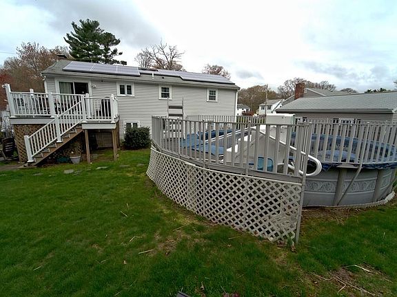 Beautiful raised ranch on residential side street features main floor with fireplaced living room with hardwood floors, renovated kitchen with separate dining area, sliders to deck, above ground pool, fenced yard and storage shed. 3 bedrooms with hardwood flooring, full bath. Lower level has in-law potential with living room, bedroom, full bath, and eat-in kitchen. Separate entrance off driveway. Central air on main floor, solar panels. Perfect for extended family.