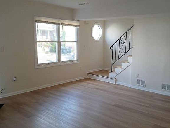 Commuter's Delight! Be the first to move into this beautifully renovated home. Conveniently located just minutes from the train station and schools, with easy access to major highways, local stores, and shopping centers everything you need is right nearby!Step inside to find freshly painted walls and brand-new flooring throughout. The spacious living room welcomes you in and flows seamlessly into the eat-in kitchen, perfect for entertaining. The first floor also features a half bath and convenient closet space.Washer and dryer hookups are available feel free to bring your own appliances.Upstairs, you'll find two generously sized bedrooms, each with ample closet space, along with a fully renovated bathroom and even more storage.Need extra room? The pull-down attic offers a surprisingly large space, perfect for additional storage.Don't miss out on this move-in ready home schedule your showing today!