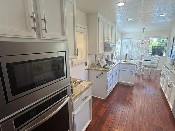 Located in the desirable Willowbrook gated community 55+ of North Napa, this single-story condo offers 1,470 sq ft of living space with two bedrooms and two bathrooms. The kitchen comes equipped with a stainless steel wall microwave/oven combo, cooktop, refrigerator, dishwasher, and sink, plus a cozy breakfast nook. The open-concept dining and living area features a fireplace, while the primary bedroom includes sliding glass doors that open to a back deck with serene water views. A private secondary patio provides additional outdoor space. The home also includes a washer and dryer (as-is), central heat and air, and a one-car garage. Community amenities include a pool and hot tub, perfect for relaxation and leisure.