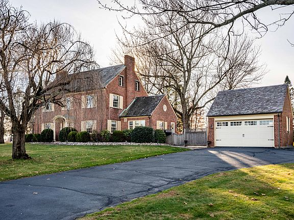 This elegant 9-room home features a slate roof, hardwood floors, air conditioning and a gracious center entrance situated on nearly an acre backing to Wethersfield Country Club. The fireplaced living room opens to a bright and inviting four season sunroom, while the formal dining room connects seamlessly to an updated kitchen complete with a butler's pantry. Front and back staircases lead to three second-floor bedrooms, including a primary bedroom with a new ensuite bath and two walk-in closets. The third floor is ideal for guests, a private suite, or a dedicated work-from-home retreat. A beautiful newly redesigned patio overlooks the huge backyard - perfect for outdoor dining and entertaining. Enjoy stunning eastern views of the Glastonbury hills and ample storage with a 2-car detached garage plus an additional detached 1-car garage/workroom. A truly special property blending historic character, beautiful light, and an exceptional location.