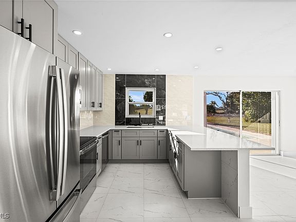 Beautifully updated pool home located on a golf course, offering 3 bedrooms, 2 renovated bathrooms, two separate living areas, an indoor laundry room, and a 1-car garage. The home features a spacious tiled patio and large pool with peaceful golf course views. Recent 2025 upgrades include a brand-new kitchen with quartz countertops, real wood shaker cabinets, new appliances, a modern sink and disposal, and luxury tile backsplash. Additional updates include new light fixtures throughout, fully remodeled bathrooms with luxury wall tile, quartz vanity tops, custom showers, new toilets and sinks, and LED fog-free mirrors. The home also offers new tile flooring throughout, updated interior doors and trim, new exterior tile, and a new roof. A new fence is scheduled to be installed in the coming weeks.
