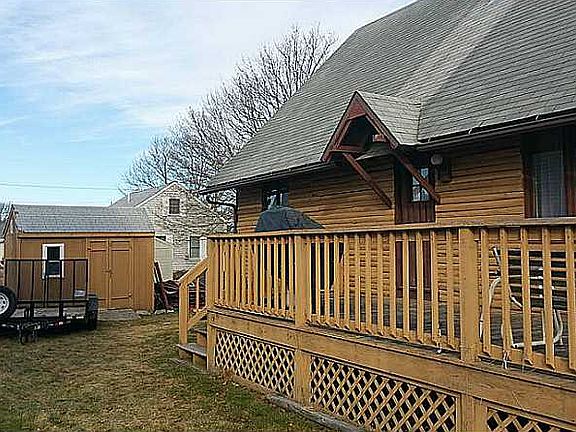 Log Cabin built in 1974 by current owners, corner lot, walk to beach, water views. Deck, cathedral ceilings, so much potential but needs rehab & TLC. Location, Location!! Expansion possibilities by going up, rear yard & out building. Make an offer