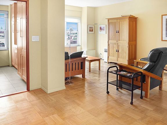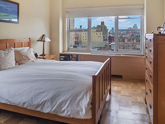 Step inside and be swept away by open skies and panoramic historic West Village views. The sun-drenched living and dining area is airy and expansive-enjoy with friends or simply soaking in the peace and quiet with a good book. Lovely wood parquet floors add warmth and timeless appeal throughout, while the layout flows beautifully from room to room.