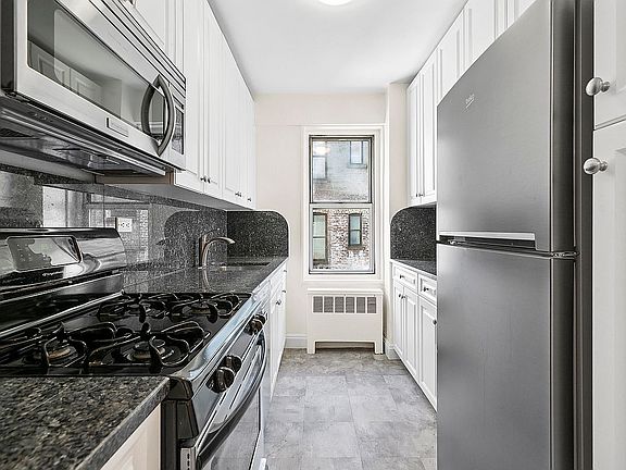 Amenities include a fitness center, laundry room, bike storage, full-time doorman, garage, and live-in superintendent. Notably, the building has no flip tax.