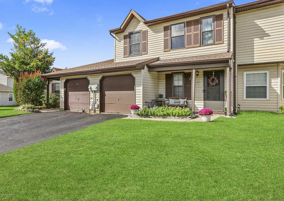 Make yourself at home in this lovely townhome in Moors Landing. This 2 bed, 2.5 bath unit showcases fresh paint, a new dryer, new windows and slider, and a new roof. The newer kitchen features tile flooring, granite countertops, wood cabinetry, and stainless steel appliances. You'll be blown away by the brand new modern and inviting patio accented by stunning landscaping overlooking a rolling, wide open field. Additional bonuses include a private garage complete with storage shelving, 6 panel doors throughout, and each bedroom is complete with its own full bathroom and 2 closets. A clubhouse, pool, playground, and basketball courts make for a wonderful community vibe. Situated conveniently near the bus station and Route 9; travel and shop with ease. Don't delay, come see this home today!