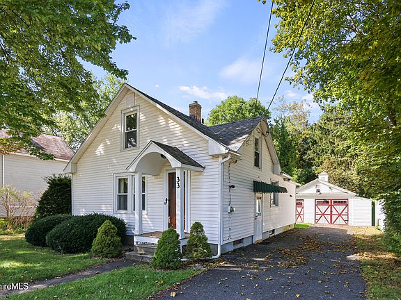 This well-cared-for 3-bedroom, 1-bath home next to Highland park and playground has been carefully maintained by the same family for generations. This home offers convenient single-level living with a first-floor bedroom and bath, plus two additional bedrooms upstairs. Many updates include a newer roof (2017), vinyl siding, replacement windows, natural gas boiler (2014), aluminum gutters, and new flooring throughout the living room and bath. Original wood trim adds character, while laminate kitchen counters provide easy maintenance. Outside, enjoy a large back deck overlooking the level yard, and a paved driveway leads to a single-car garage with attached storage shed. A home filled with care, comfort, and convenience—ready for its next chapter! OPEN HOUSE SAT 10/4 10AM-12PM!
