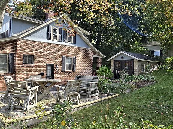 Beautiful 1.5 Story Bungalow Cape on lovely corner lot offering yard space, garden beds, deck and detached carriage garage. Charming home with many original features showcasing hardwood floors, gingerbread windows, enclosed heated front porch and covered back entryway. Open concept first floor boasts eat-in-kitchen with maple cabinetry and island. Charming center fireplace with gas insert is an attractive focal point to the living room offering wrap-around mantle, built-ins and charm. Second floor features two bedrooms, walk-in closet and bath. Walking distance to parks, restaurants and shopping! Showings begin Tuesday, October 15, by appointment.