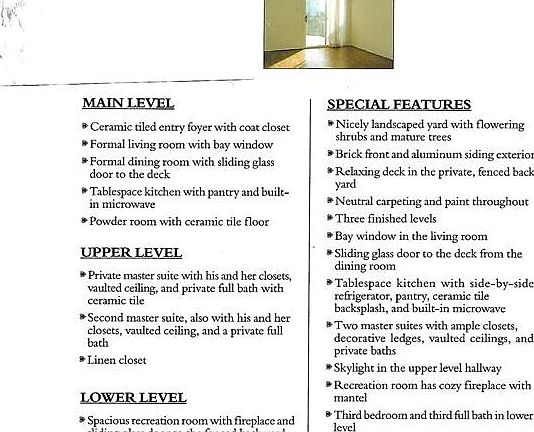 2 Large Master Suites upstairs with attached bathrooms. A finished walk out basement with a living room area, extra room, storage and full bath. Walkout basement into a fenced yard, dinning room opens into large deck. Tenant responsible for water, electricity, utilities.