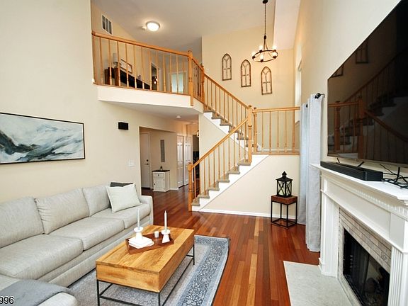 This gorgeous, updated townhouse offers 3 spacious bedrooms, 2 full and 2 half bathrooms with modern finishes throughout. Renovated in 2019, this home features a stunning kitchen with granite countertops, stainless steel appliances and plenty of cabinets. The inviting living room boasts a cathedral ceiling with skylights, a cozy gas fireplace, plus abundant natural light. Enjoy the roomy Den/Office. The first floor showcases gorgeous Brazilian hardwood floors, adding warmth and elegance. Upstairs, enjoy a large loft perfect for a home office or relaxation area, plus a generous primary suite with a walk-in closet and double closet. The primary bathroom includes a double-sink vanity, oversized shower and skylight for added brightness. The finished walk-out basement offers flexible living space and opens to a private wooded backdrop, ideal for entertaining or relaxing. Major updates include SS appl (2019), roof/skylights (2023), Trex deck (2022), hot water heater (2022), HVAC (2024), and driveway (2020). Enjoy outdoor living on the spacious Trex deck overlooking nature. LOW HOA FEE $258.50 QUARTERLY! Walk to the Park and Silver Saddle Pool. Close to major highways, shopping, restaurants and Bridgewater Mall. Just unpack your bags and move right in, this home has it all!