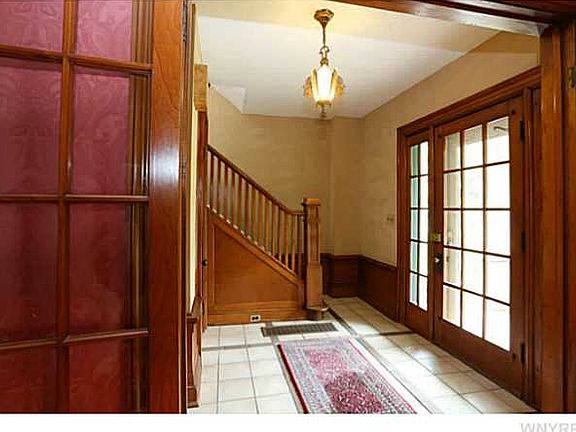Bring Home Happiness in this classic,well maintained Eggertsville Colonial.Elegance greets you upon entry through the beautiful 15 lite door w/ sidelights.Off of the Foyer you'll find the spacious yet warm & inviting Living Rm. featuring a gas FP insert w/ custom surround & leaded glass built in,corner curio,crown molding & wainscoting complemented by the hdwd flooring underfoot.Formal Dining Rm is perfect for entertaining your lengthy guest list & creating traditions lasting a lifetime.Updated kitchen w/ granite countertops & a picturesque view of the covered rear porch& landscaped pool area.
